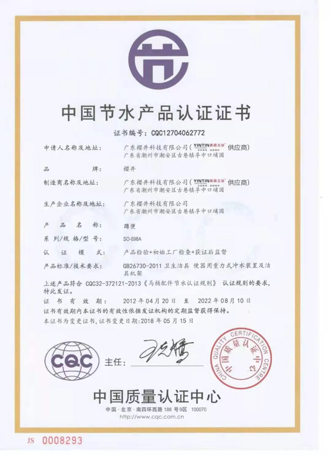 中国节水产品认证证书