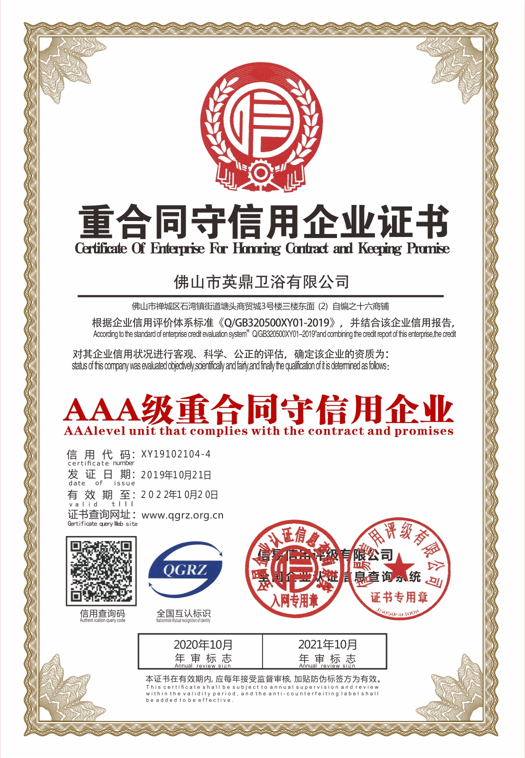 重合同守信用企业证书