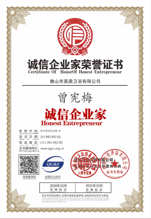 诚信企业家荣誉证书