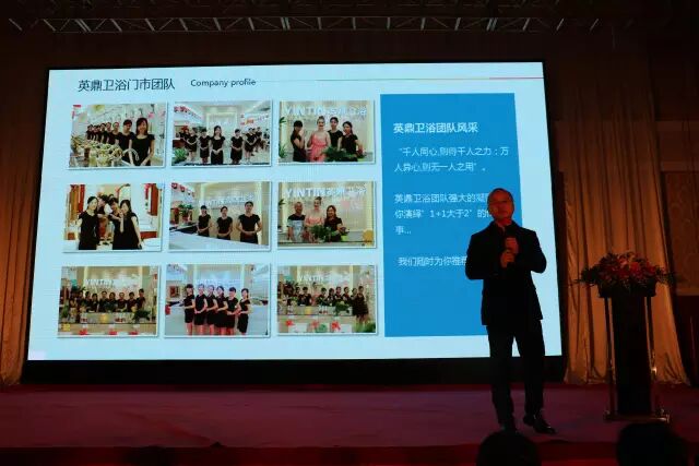 招商会议上的企业路演环节,英鼎卫浴总经理曾宪权为在座的经销商们全方位讲解的英鼎卫浴的发展历史、企业团队以及英鼎卫浴所拥有的资源,博得台下掌声不断。