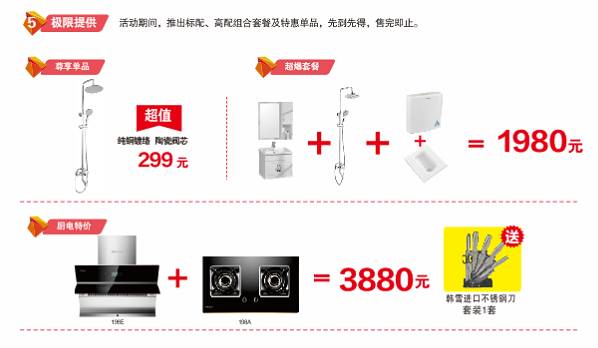 套餐二:美声厨电高档油烟机+燃气灶,组合限时抢购价:3880元。购厨电套餐,送进口刀具,极限特供,先到先得!