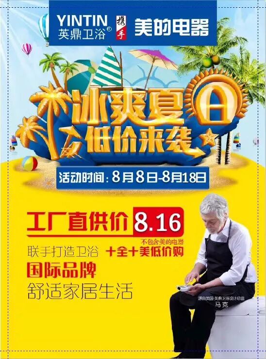 新征程,新跨越。大牌联动,狂欢大促,感恩回馈,钜惠全城。作为卫浴行业的领军品牌,英鼎卫浴与美的电器为回馈广大客户的喜爱,联手打造五十周年豪门盛宴,家装服务一步到位,空前的折扣力度让你一次买个够!这个夏天,把“水上乐园”带回家!