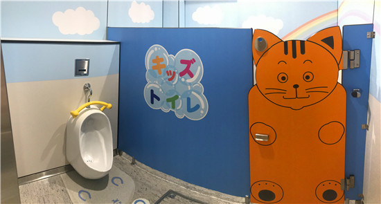 (3)时常感受到国内公共卫生间所设计的小朋友洗手盆毫无诚意,无非是在成人洗手盆旁边降低了台盆高度,但是台盆宽度跟成人一致,小朋友在实际使用中并不够舒服。而日本则在人性化细节方面比较到位,小朋友专属的马桶、便斗、洗手盆,且设计可爱活泼,让小朋友有一个轻松愉悦的专属空间。